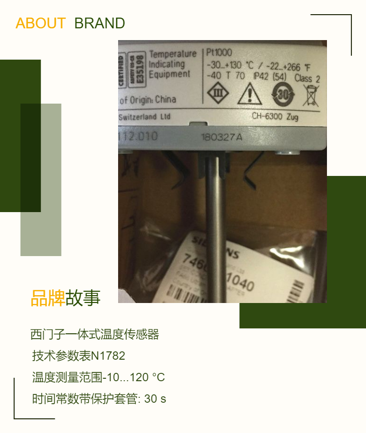 首頁 >產品 >儀器儀表 > 控制儀表> 傳感器>Siemens/西門子一體式浸入式溫度傳感器QAE2174