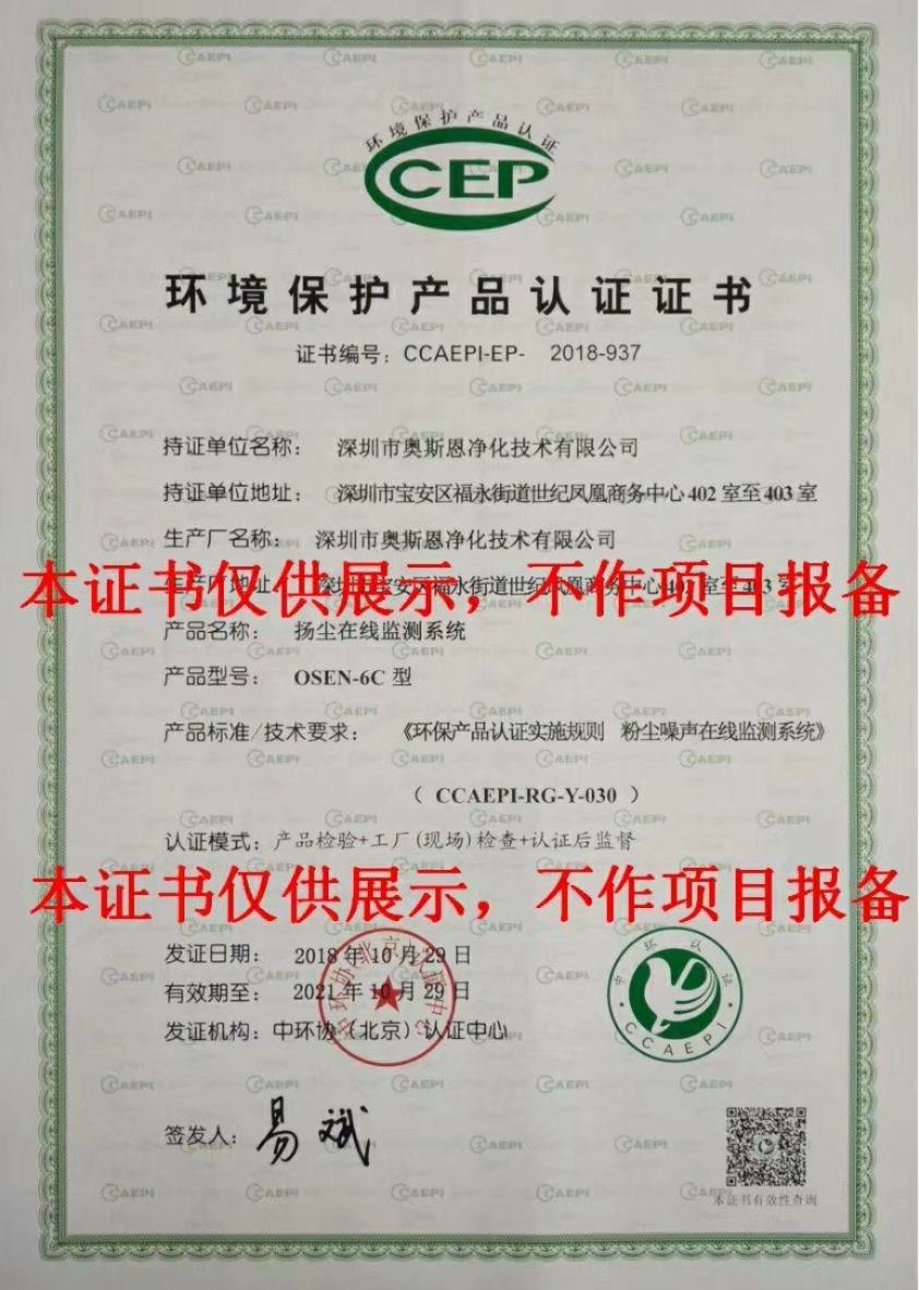 (一)具有CCEP、CPA雙認證,配置高、低位雙監控頭,監測終端系統系統集成了 TSP、PM10、PM2.5、溫度、濕度、風向和風速、大氣壓,降雨量等多個環境參數,全天候 24 小時在線連續監測,全天候提供工 地的空氣質量數據,超過報警值時還能自動啟動監控設備,具有多參數、實時性、 智能化等特性;