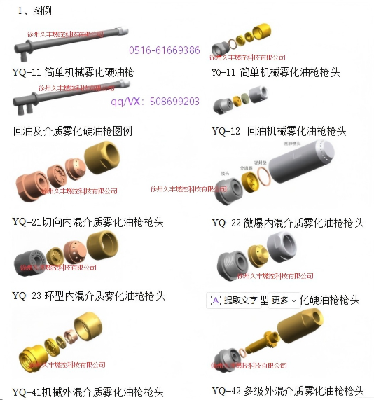 分類適配:涵蓋內混式、Y型、外混式等多種類型(代表產品:YQ-22型微爆內混式介質霧化油槍),可根據介質類型、燃燒場景精準匹配。