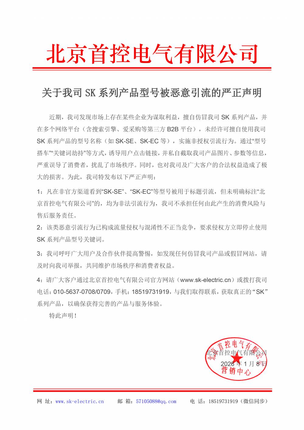 關于北京首控SK系列產品型號被惡意引流的嚴正聲明