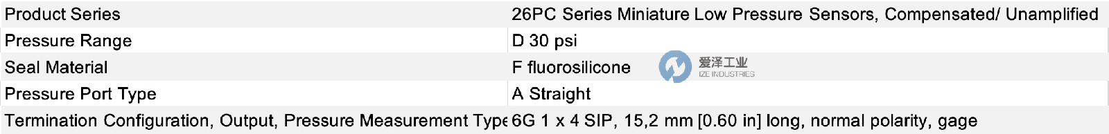 這些傳感器可兼容多種與聚對苯二甲酰胺 (PPA) 塑料和命名與訂購指南中規定的介質密封件兼容的濕/干介質(參見圖 2)。26PC 傳感器符合 RoHS 要求。