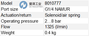 如果有任何關于NORGREN電磁閥8010777的疑問,請隨時致電我們,愛澤工業(021-31006702)。我們將盡全力解決您的問題。