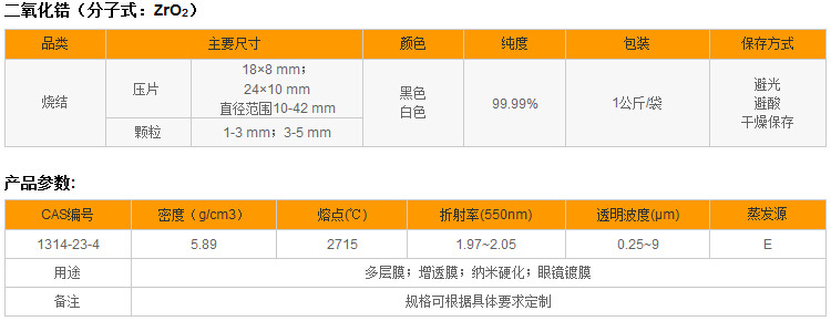 氧化鋯有三種晶型:低溫為單斜晶系,相對密度為5.65g/cm3;高溫為四方晶系,相對密度為6.10g/cm3;更高溫度下轉變為立方晶系,相對密度為6.27g/cm3。
