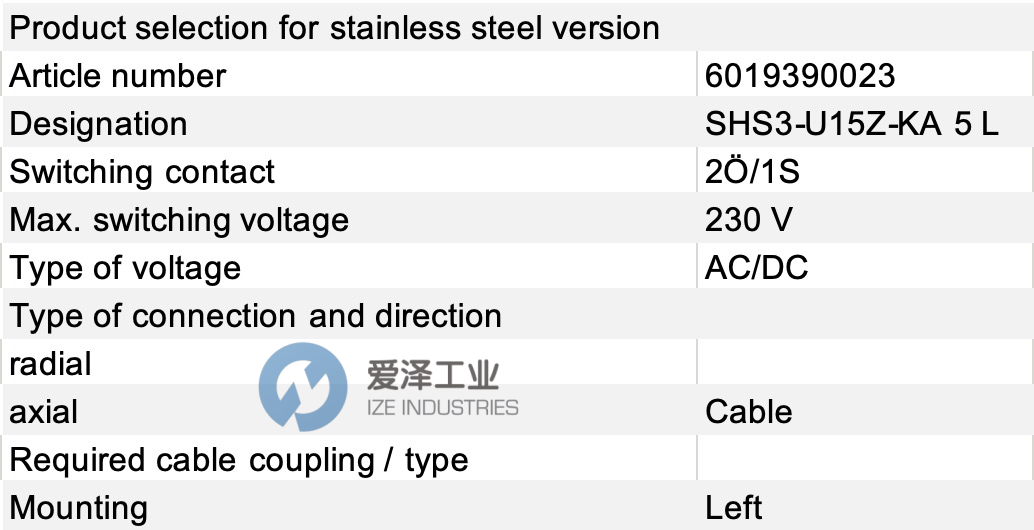 如果有任何關于BERNSTEIN開關SHS3-U15Z-KA5-L的疑問,請隨時與我們溝通(021-31006702)。我們將盡全力解決您的問題。