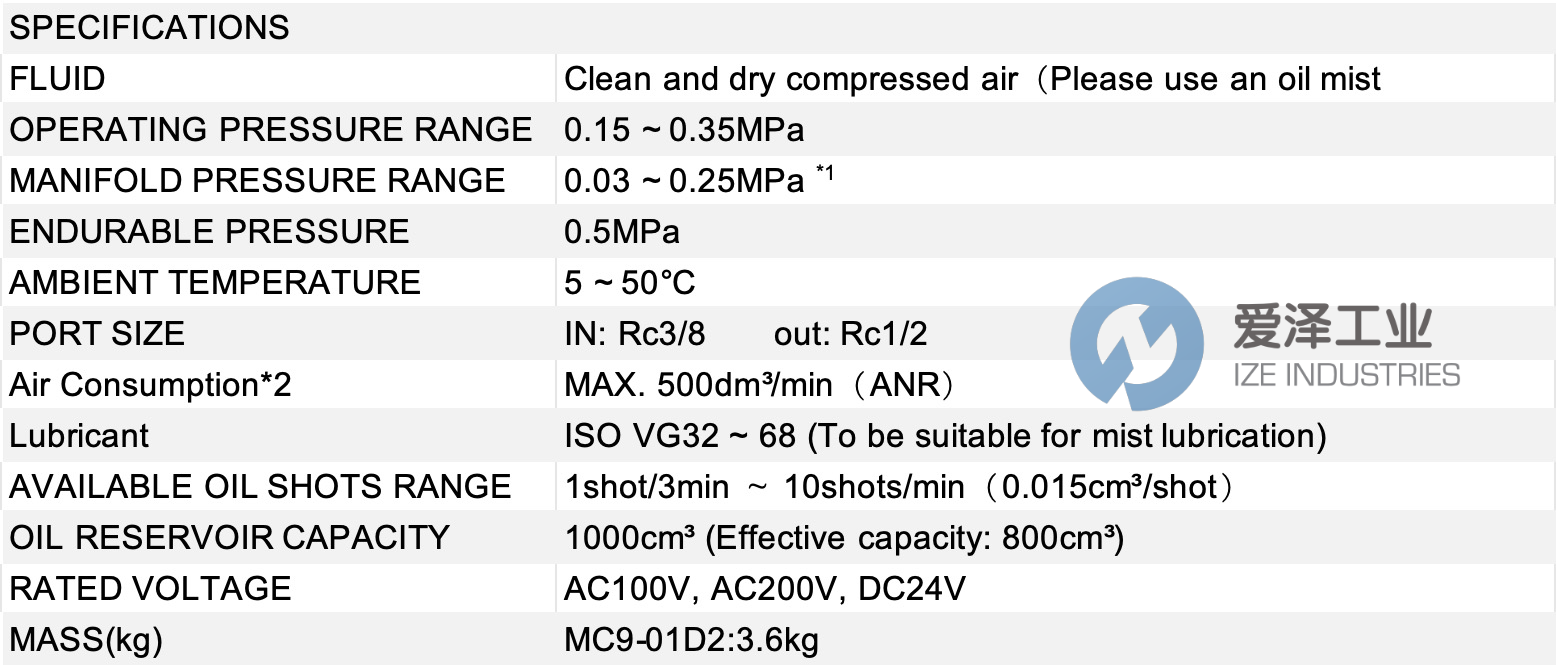AZBIL油霧潤滑裝置MC9-01D2系列規格描述