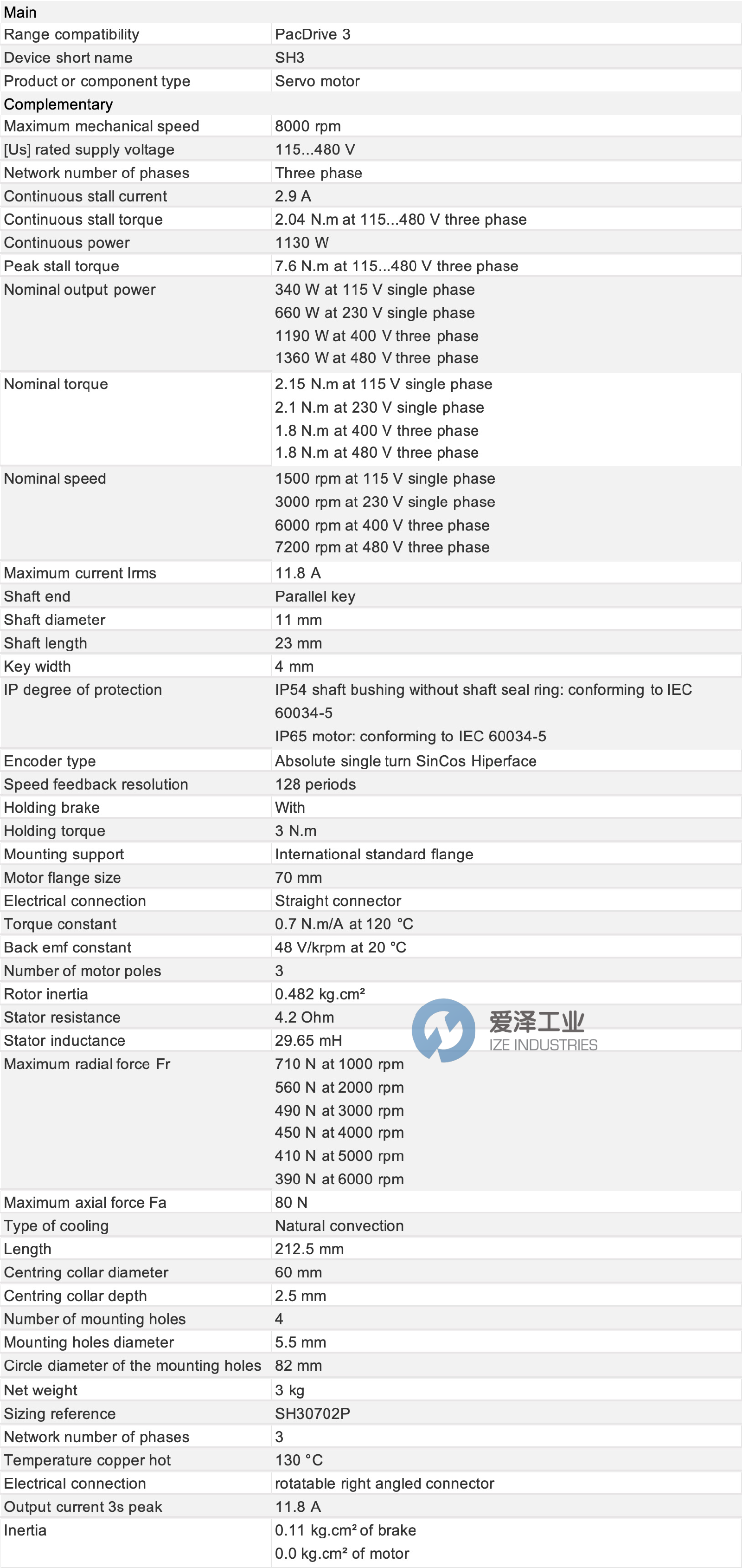 ELAU電機SH30702P11F2000技術(shù)參數(shù)