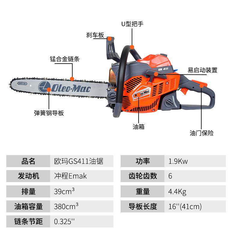 歐瑪GS411油鋸導板汽油鋸 修枝鋸 伐木鋸配件 汽缸總成 16英寸