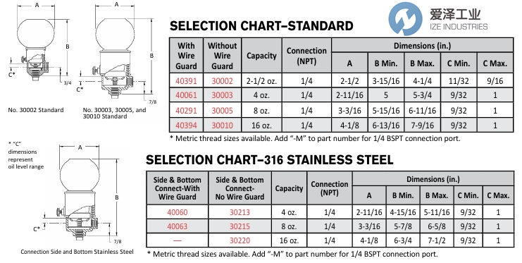 TRICO油杯OPTO-MATIC系列其他常用型號: